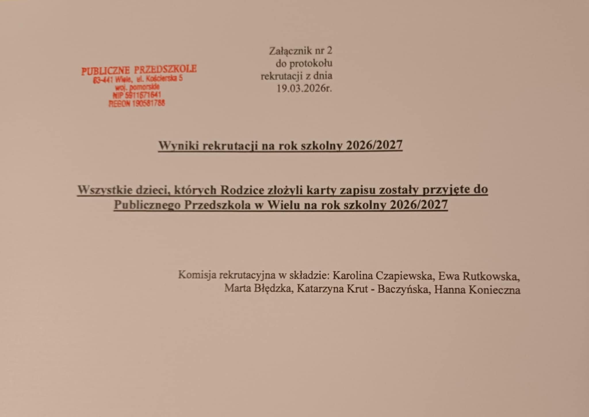 potwierdzenie woli przyjęcia do Publicznego Przedszkola w Wielu na rok szkolny 2026/2027