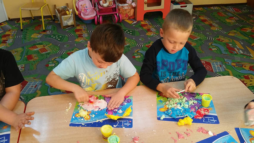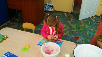 Zabawa własnoręcznie wykonaną ciastolina- grupa "Biedronki"